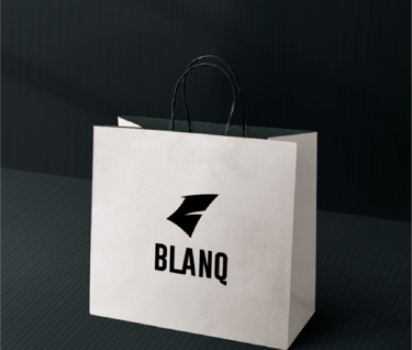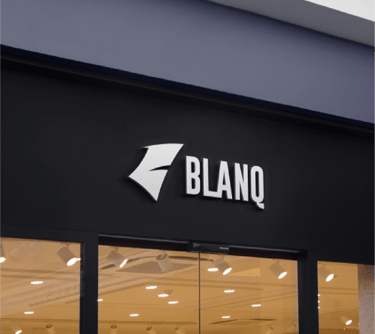 The Blanq logo represents modern minimalism with a strong connection to nature and freedom. At the center is a sharp, abstract emblem shaped like a stylized wing or flame, symbolizing movement, ambition, and forward momentum. This mark reflects the brand’s spirit of confidence, individuality, and bold self-expression.